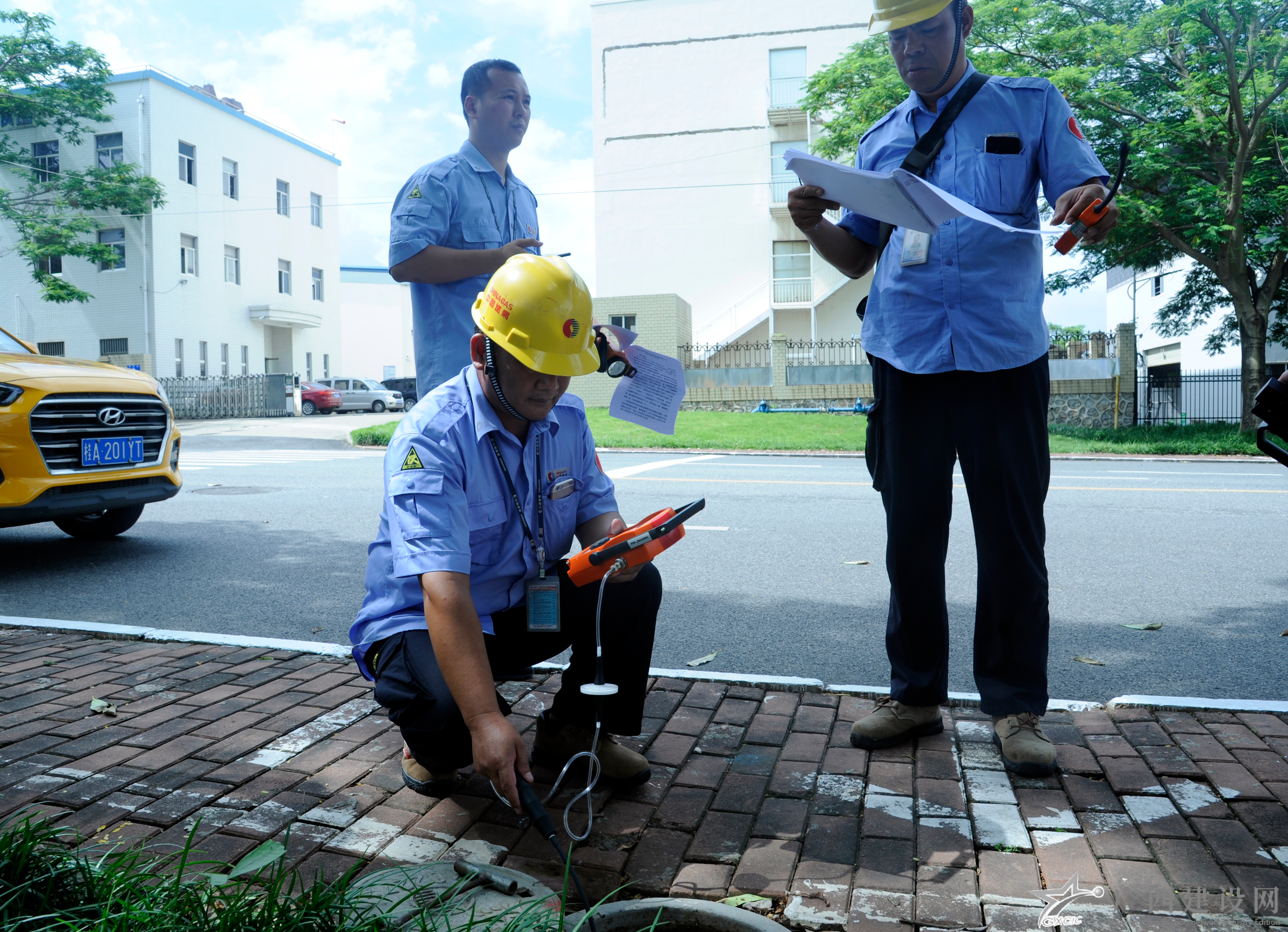 南寧中燃網(wǎng)格員正在檢查市政燃?xì)夤芫€