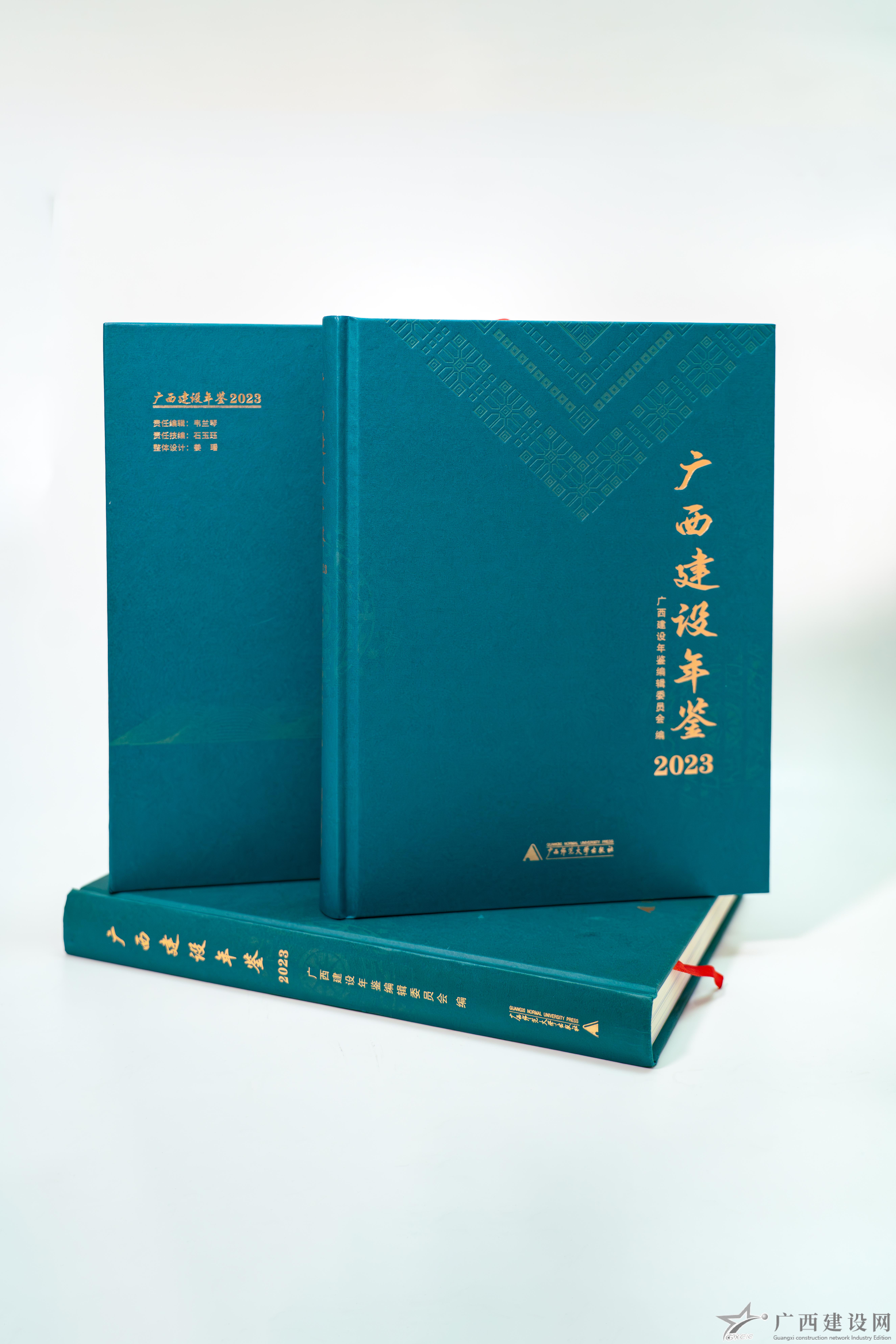 ▲《廣西建設(shè)年鑒(2023)》封面設(shè)計采用壯錦、銅鼓紋飾元素