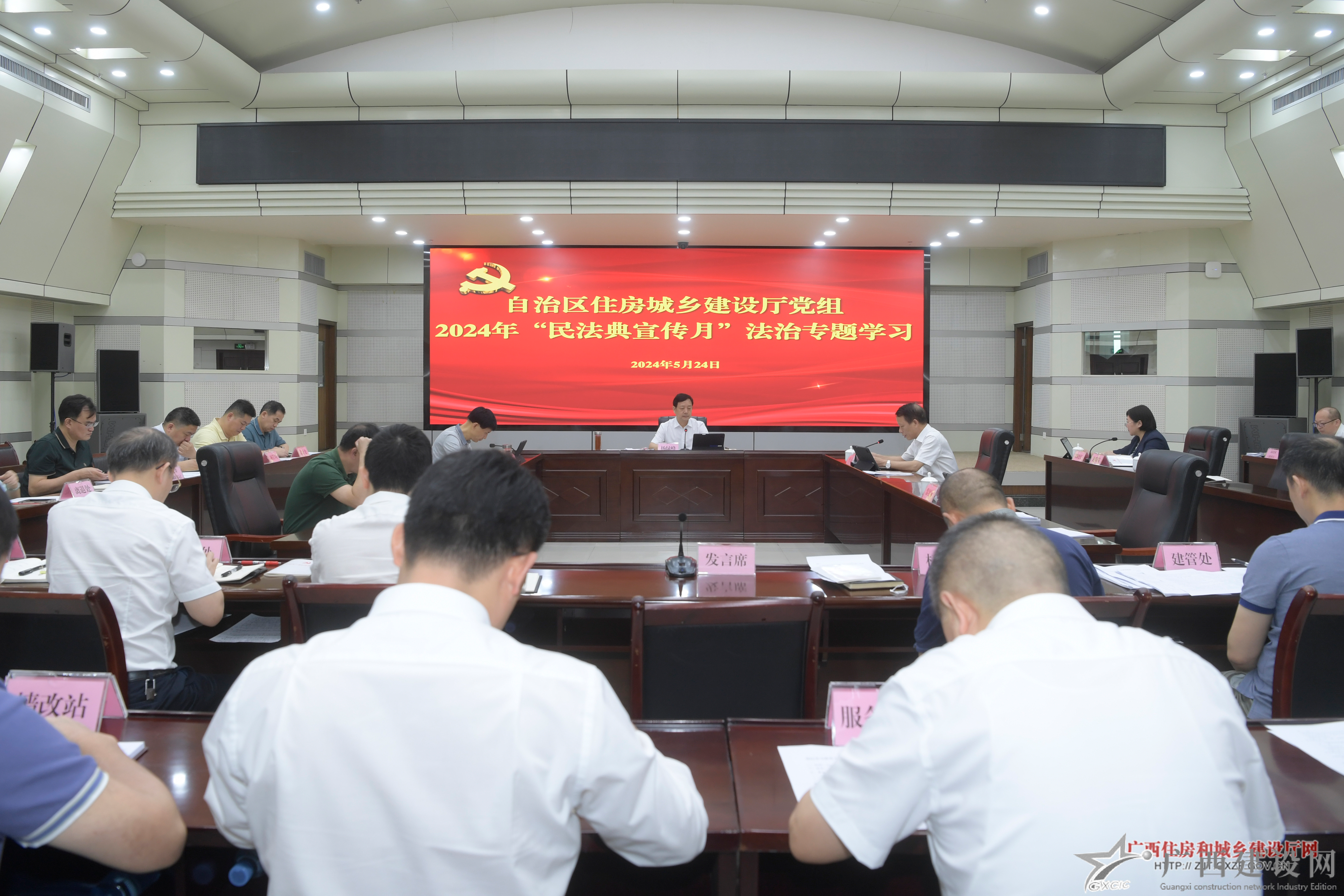 5月24日,自治區住房城鄉建設廳開展2024年“民法典宣傳月”法治專題學習,進一步加強《中華人民共和國民法典》普法工作。自治區住房城鄉建設廳黨組書記、廳長楊綠峰主持會議并講話。