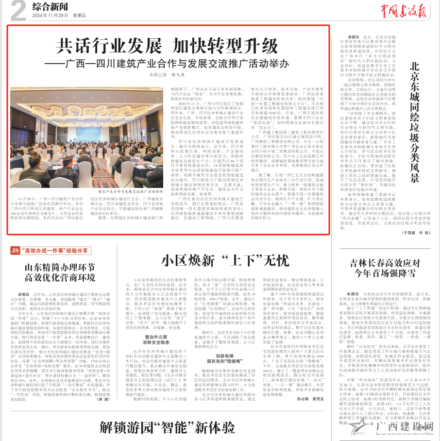 11月28日,廣西-四川建筑產業合作與發展交流推廣活動在四川成都舉辦,兩地企業共尋行業發展機遇,探索互利共贏空間。