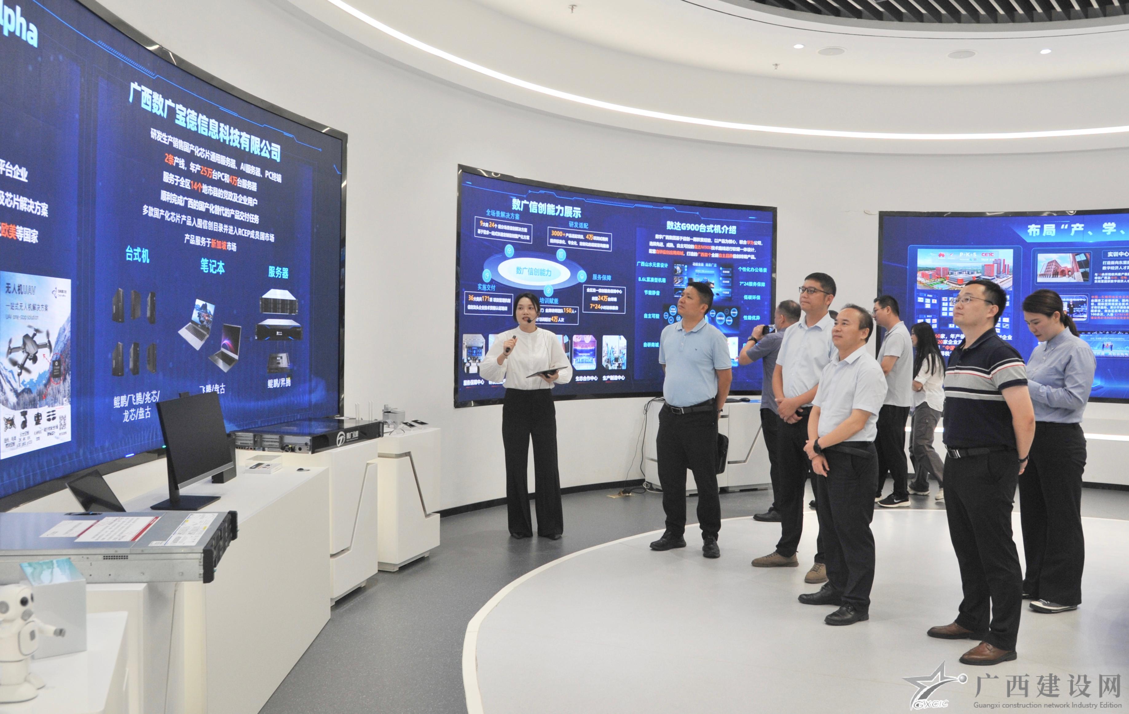 活動后,與會嘉賓一行參觀了中國東盟數字經濟產業園展廳,聽取了數字廣西集團在產業數字化及數字產業化方面的建設進展,體驗了先進科技成果,了解了“智桂通”平臺等在數字政府、數字社會、數字經濟等領域的重點項目及建設成效。活動最后,與會嘉賓進行集體合影留念。