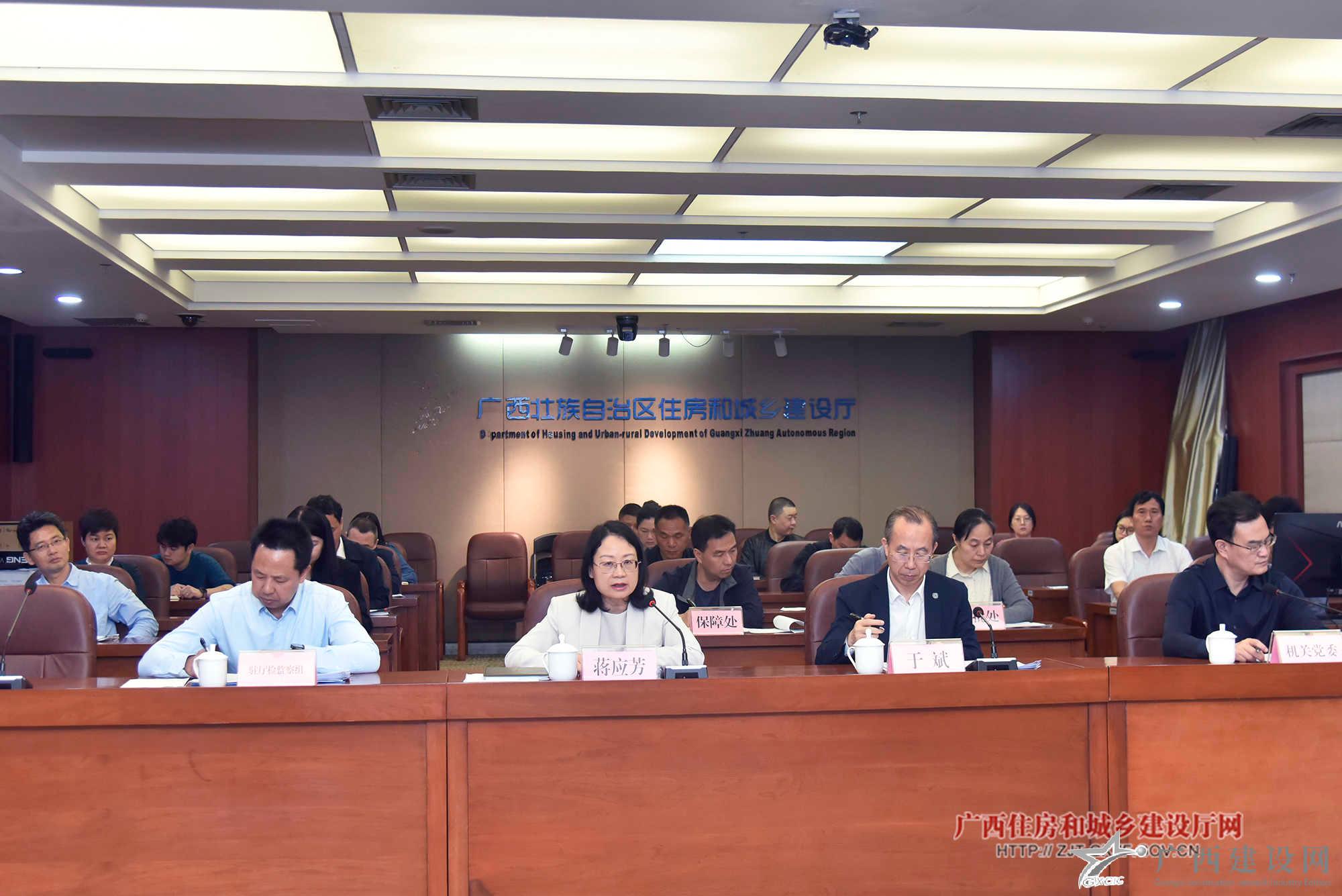 自治區(qū)住房城鄉(xiāng)建設廳黨組成員、駐廳紀檢監(jiān)察組組長蔣應芳(左二),廳黨組成員、副廳長于斌(右二)參加會議