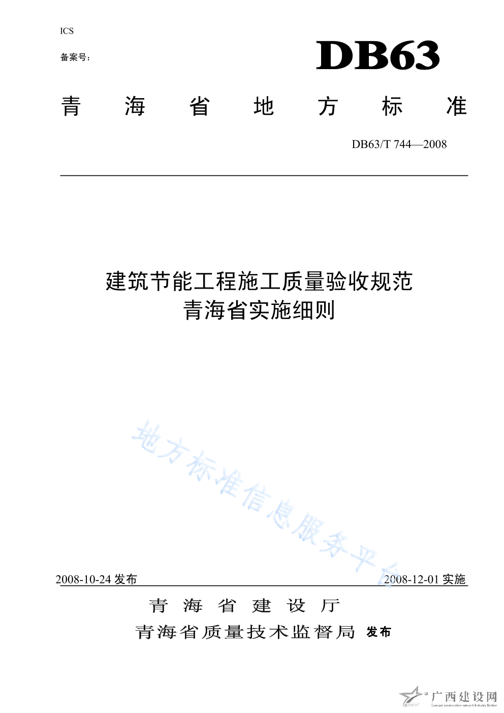 DB63 744-2008建筑節(jié)能工程施工質(zhì)量驗(yàn)收規(guī)范青海省實(shí)施細(xì)則