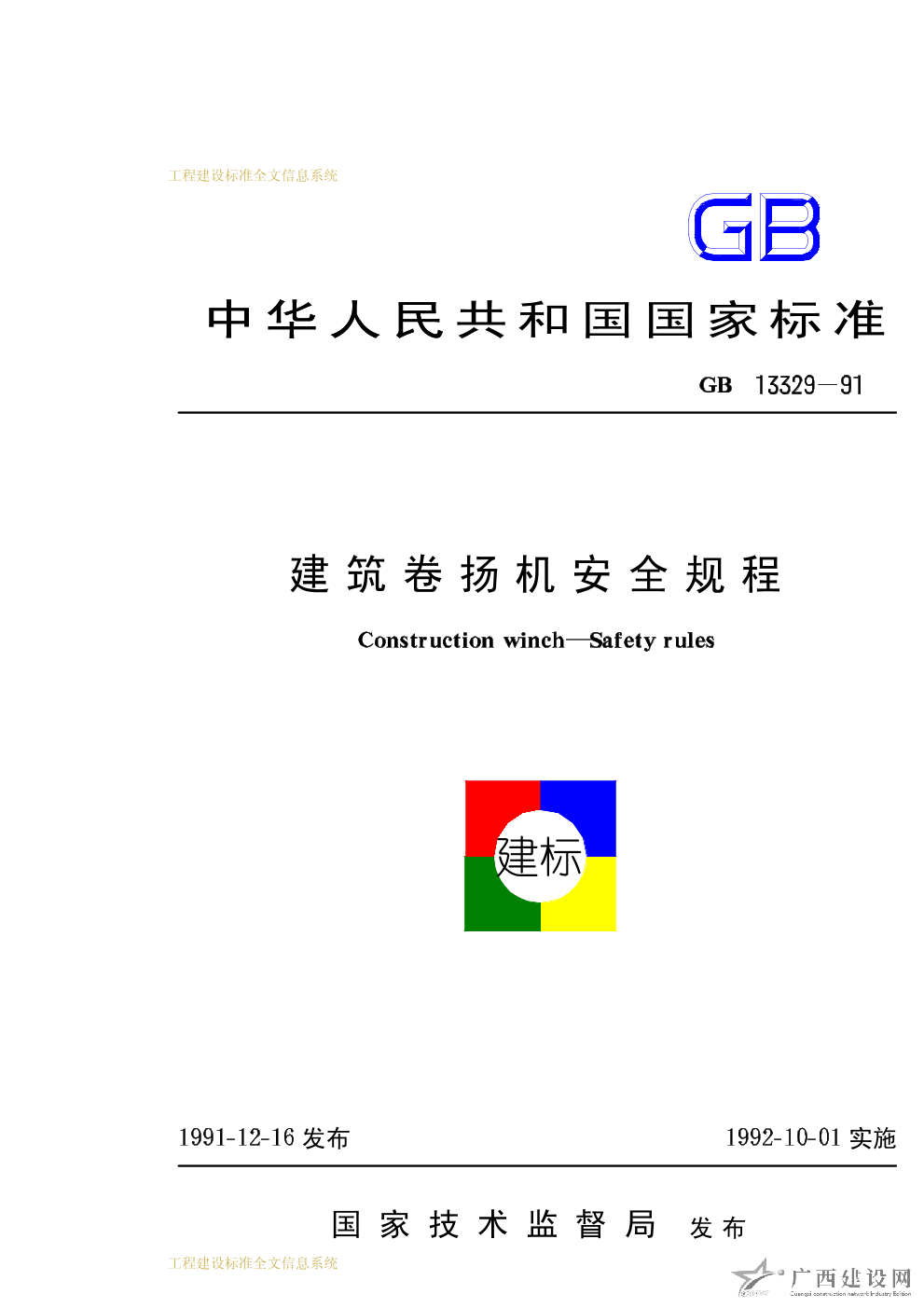 建筑卷揚機試驗規范和方法 GB6947-86