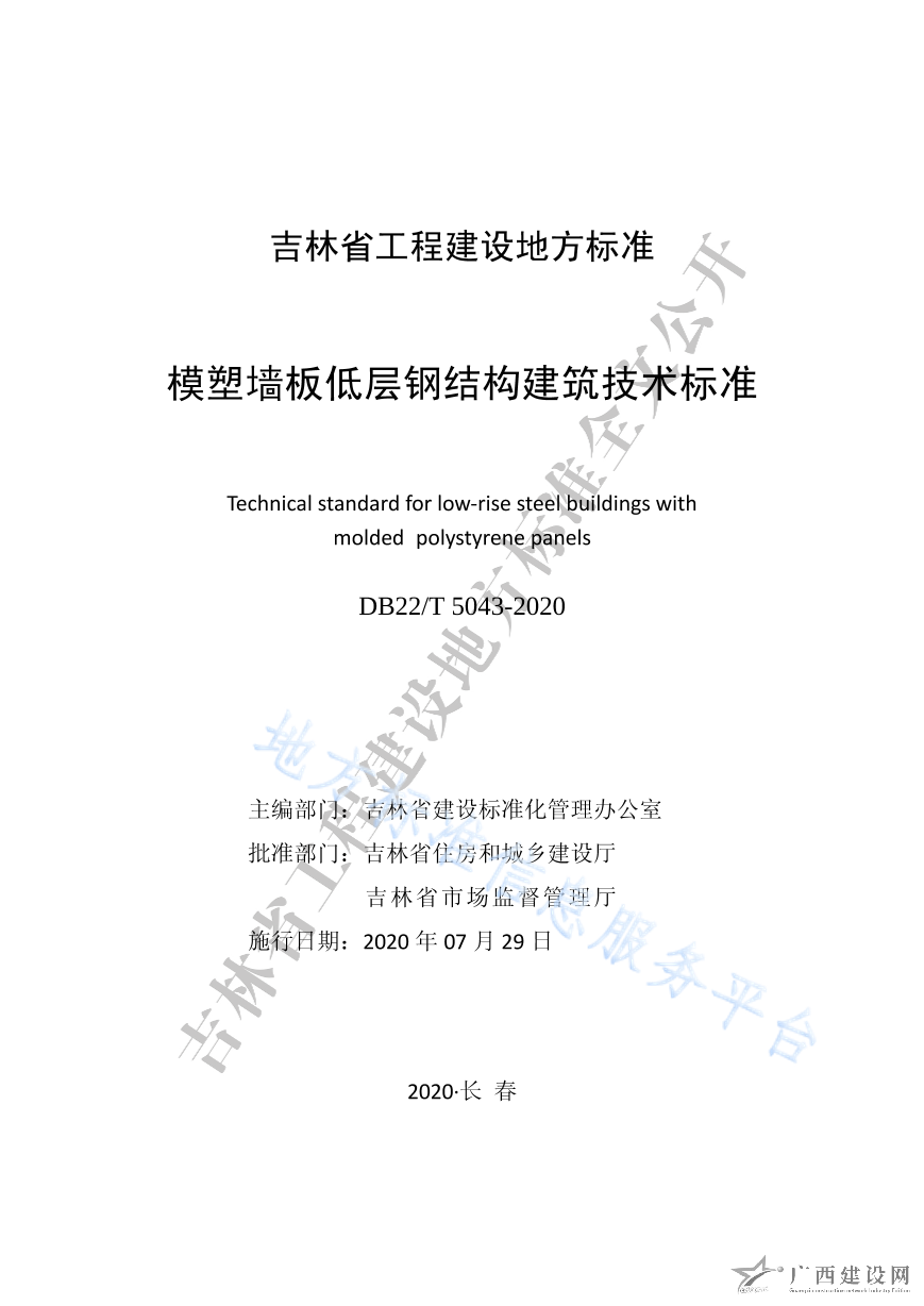 DB22 5043-2020模塑墻板低層鋼結構建筑技術標準