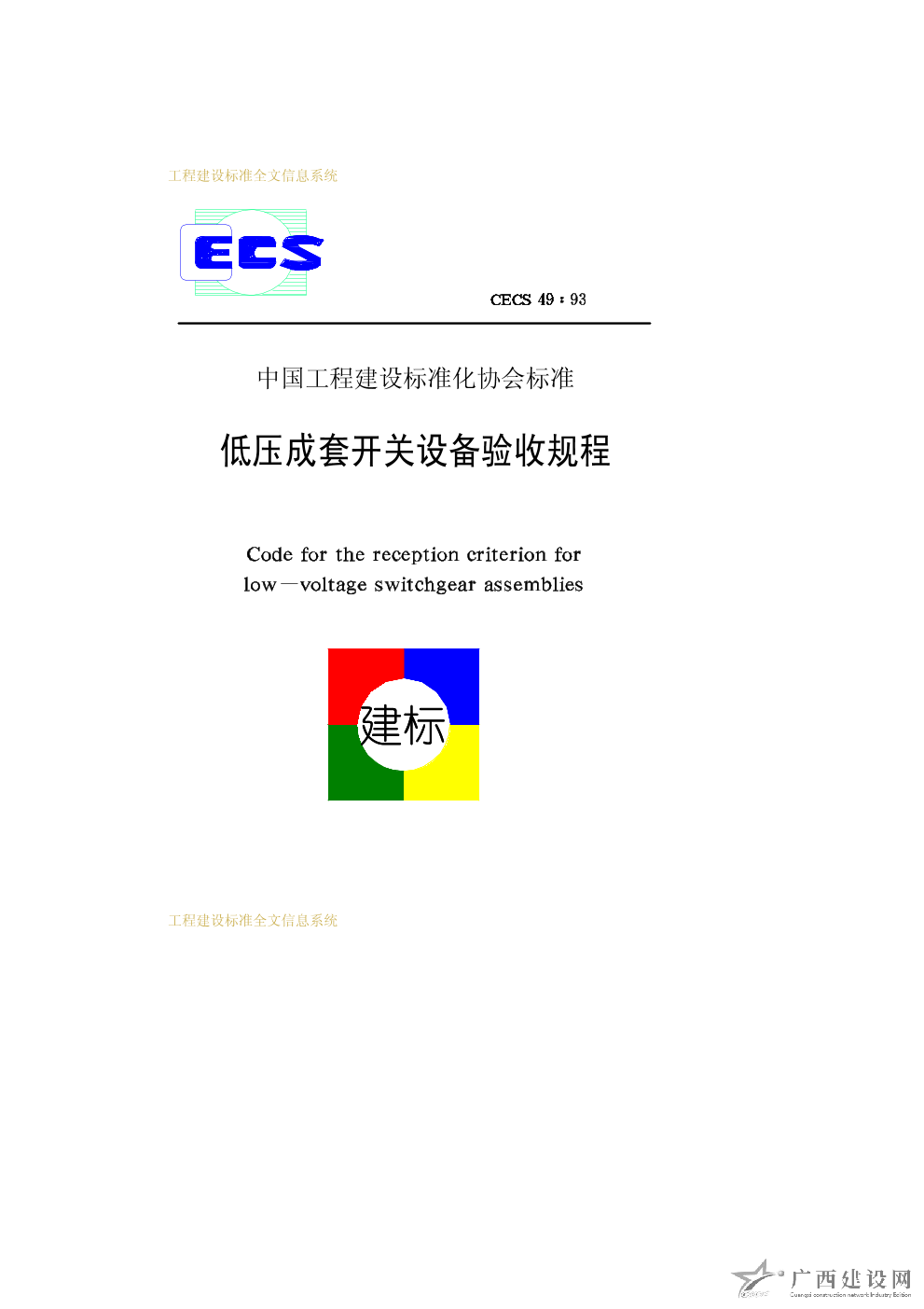 低壓成套開關(guān)設(shè)備驗收規(guī)程 CECS49∶93