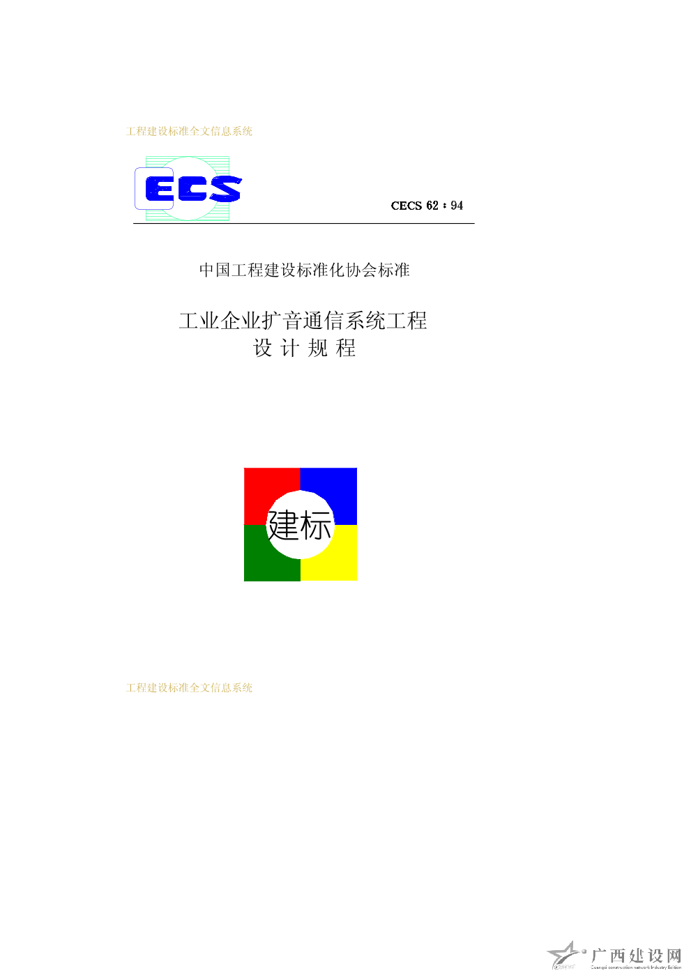 工業(yè)企業(yè)擴(kuò)音通信系統(tǒng)工程設(shè)計規(guī)程 CECS62∶94