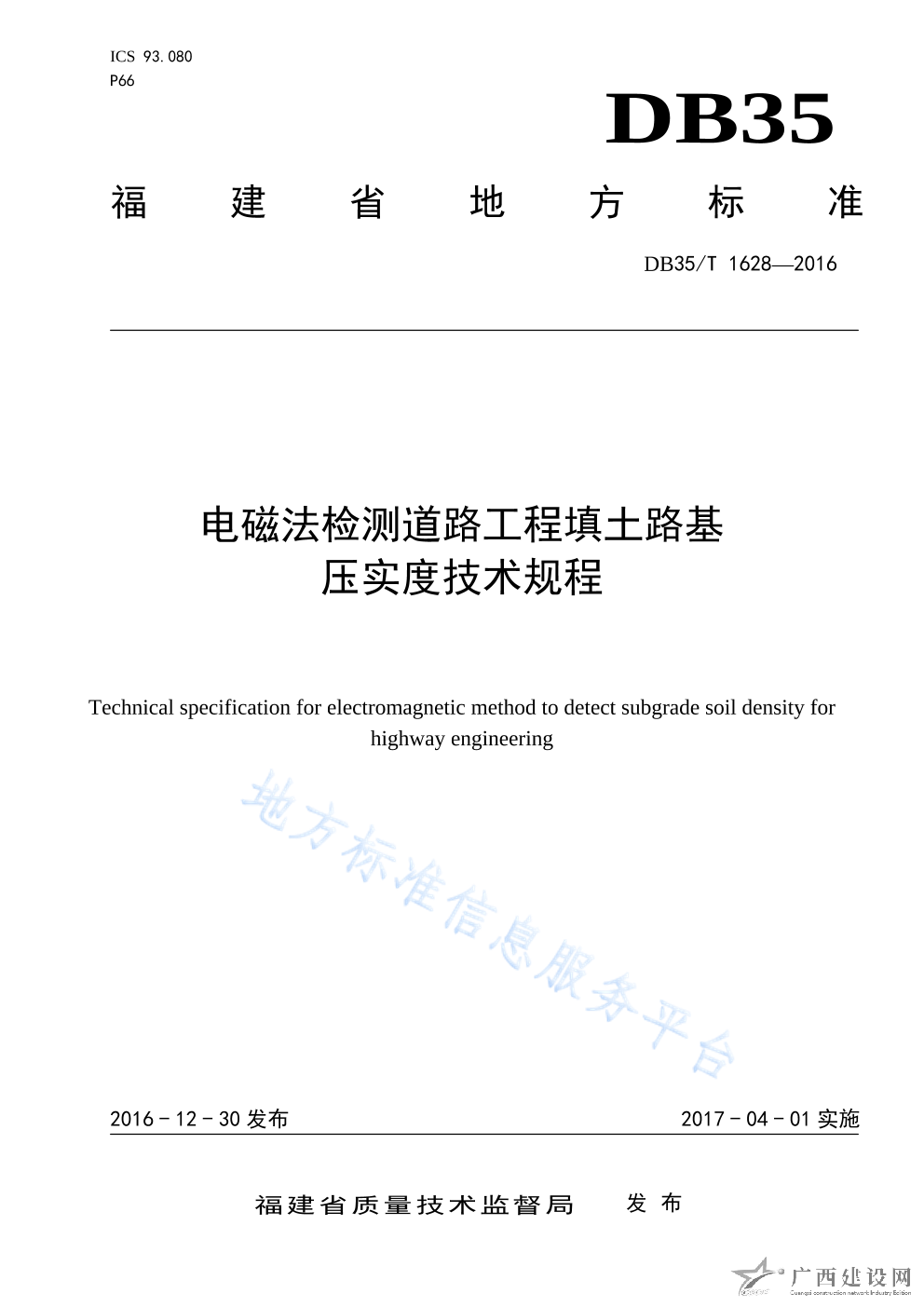 DB35 T1628-2016電磁法檢測(cè)道路工程填土路基 壓實(shí)度技術(shù)規(guī)程