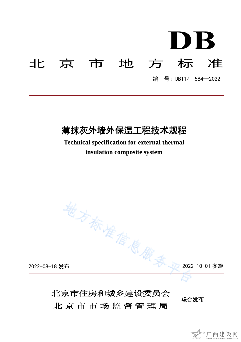 DB11 T+584-2022薄抹灰外墻外保溫工程技術(shù)規(guī)程