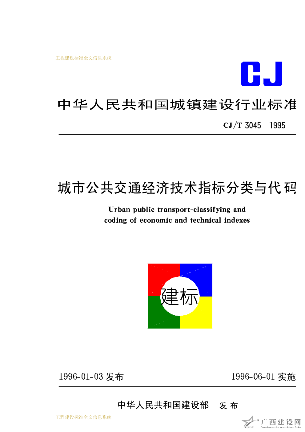 城市公共交通經濟技術指標分類與代碼 CJ/T3045-1995