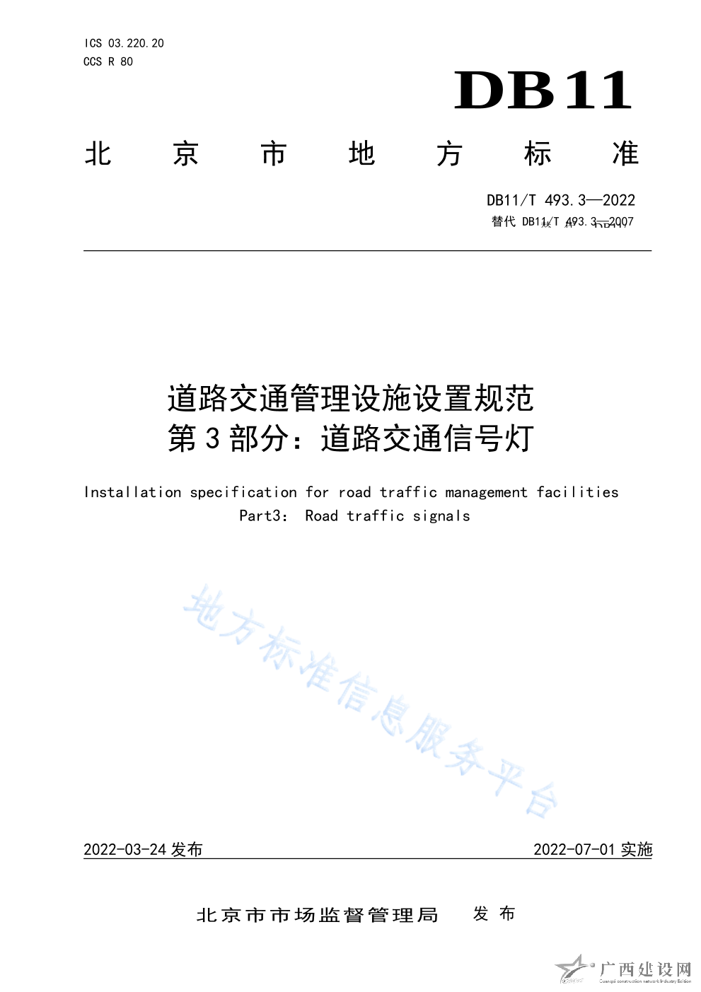 DB11 T+493.3-2022道路交通管理設施設置規范 第3部分道路交通信號燈