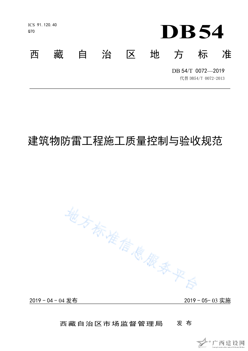 DB54 T0072-2019建筑物防雷工程施工質(zhì)量控制與驗收規(guī)范