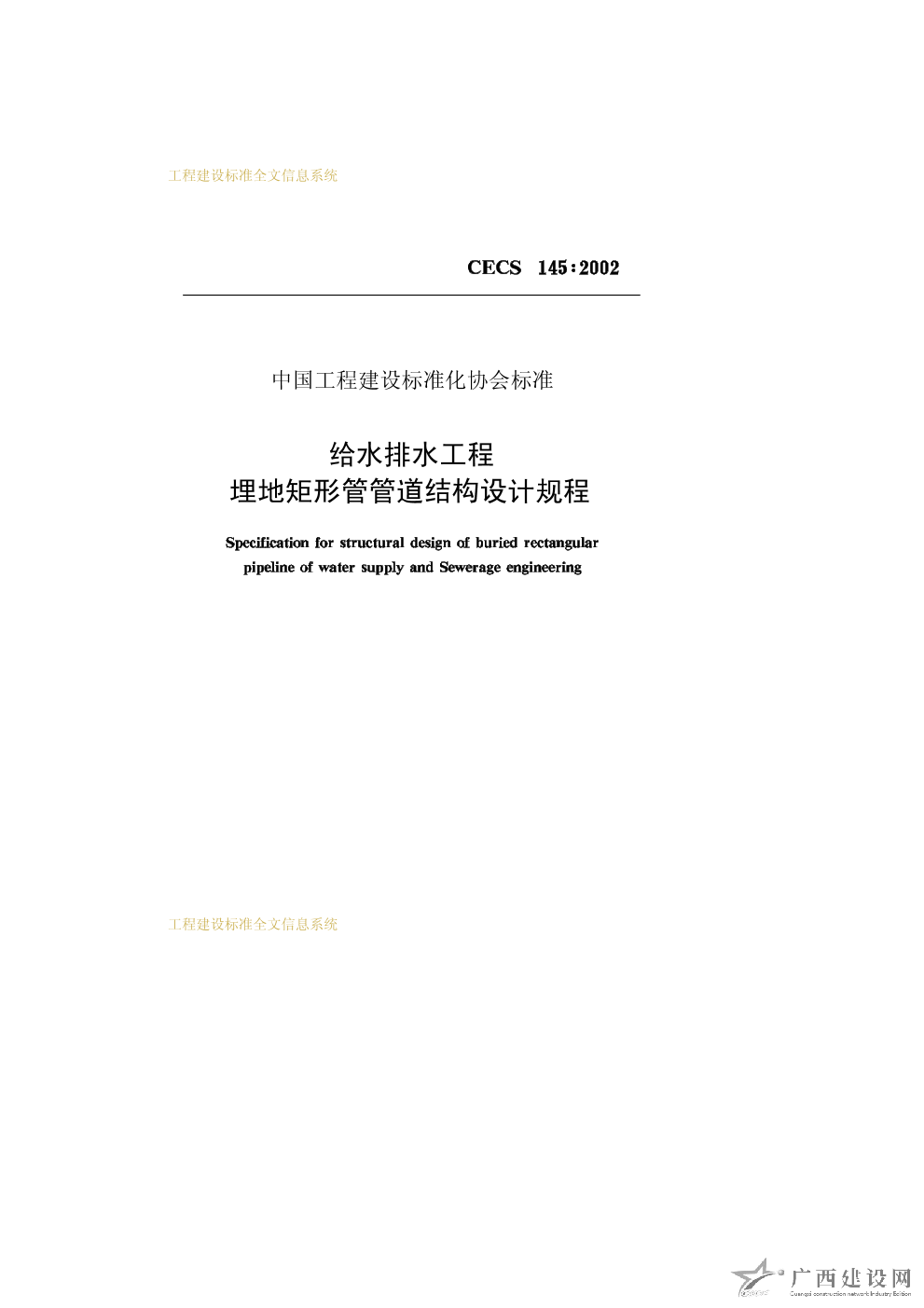給水排水工程埋地矩形管管道結(jié)構(gòu)設(shè)計規(guī)程 CECS145