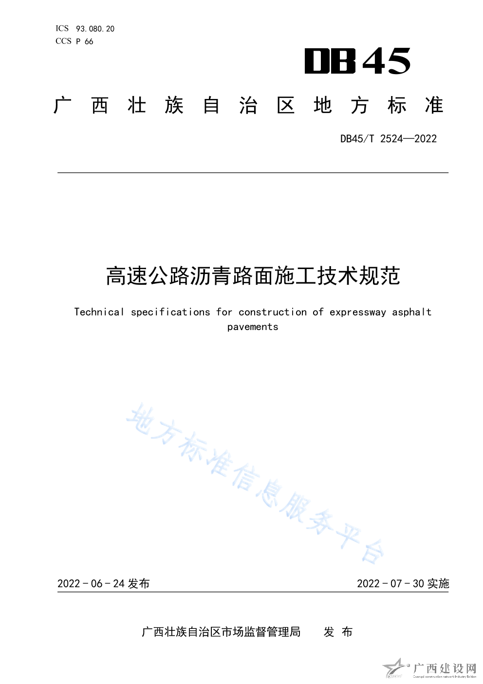 DB45T+2524-2022+高速公路瀝青路面施工技術(shù)規(guī)范