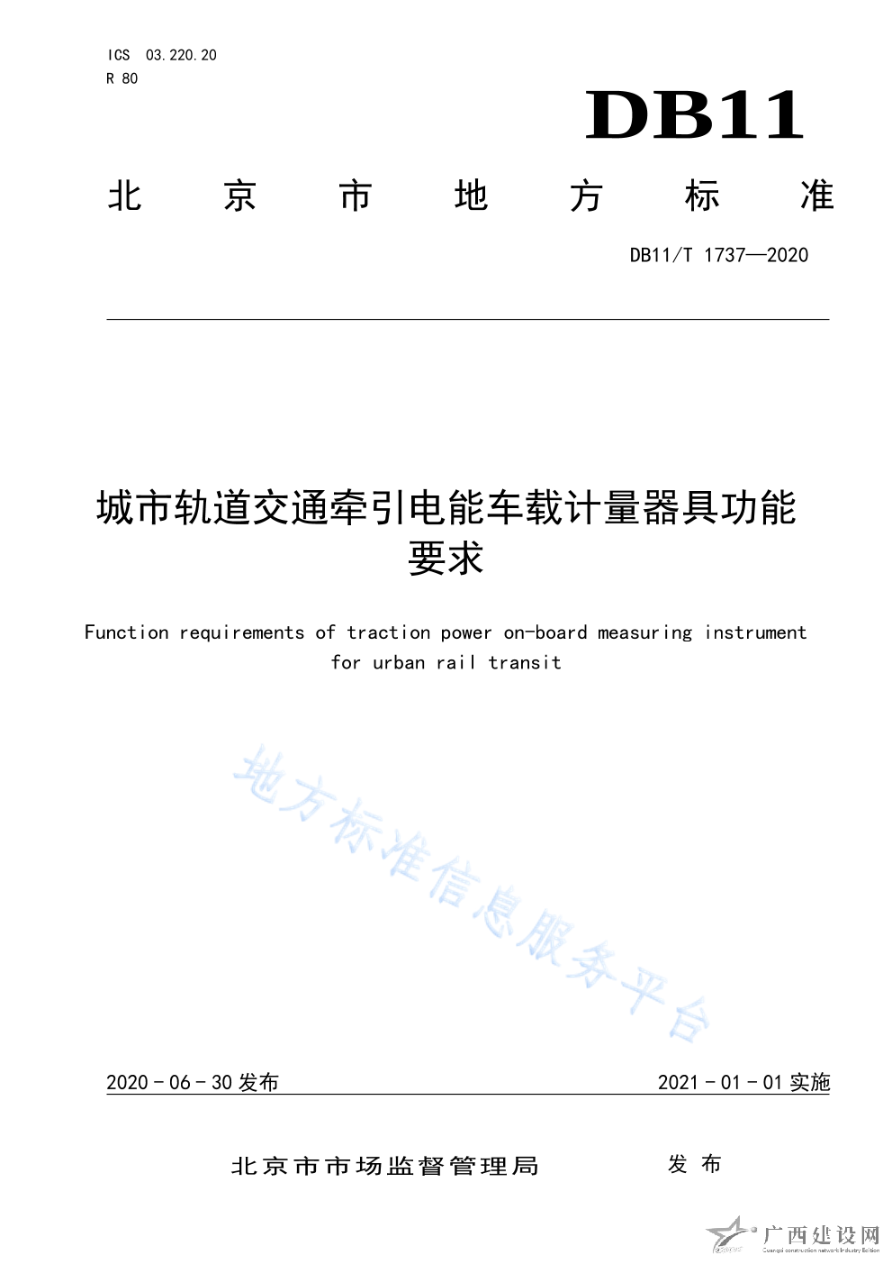 DB11 T+1737-2020城市軌道交通牽引電能車載計量器具功能要求