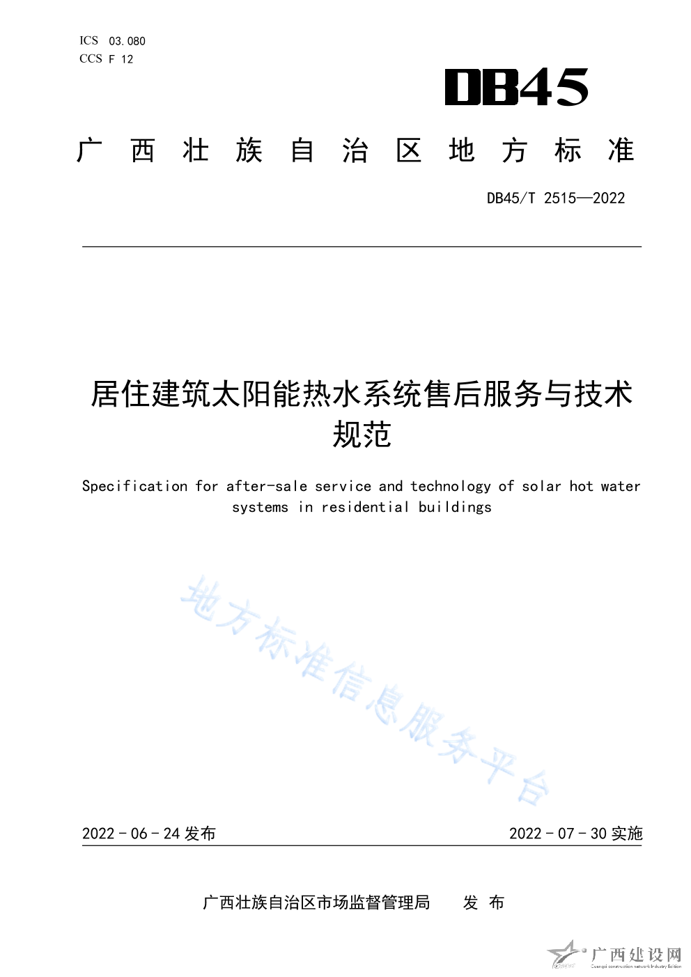 DB45T+2515-2022+居住建筑太陽(yáng)能熱水系統(tǒng)售后服務(wù)與技術(shù)規(guī)范
