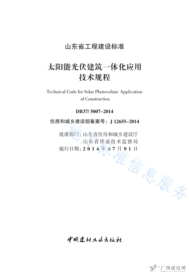 DB37 5007-2014太陽(yáng)能光伏建筑一體化應(yīng)用技術(shù)規(guī)程