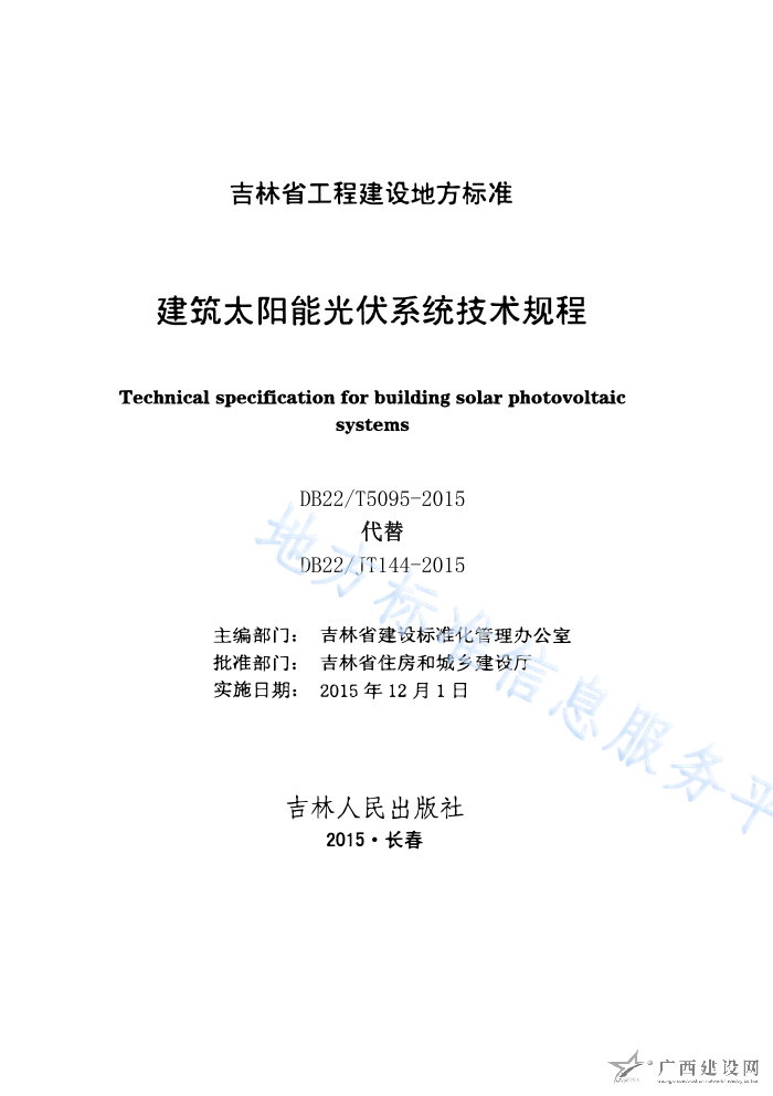 DB22T5095-2015建筑太陽(yáng)能光伏系統(tǒng)技術(shù)規(guī)程