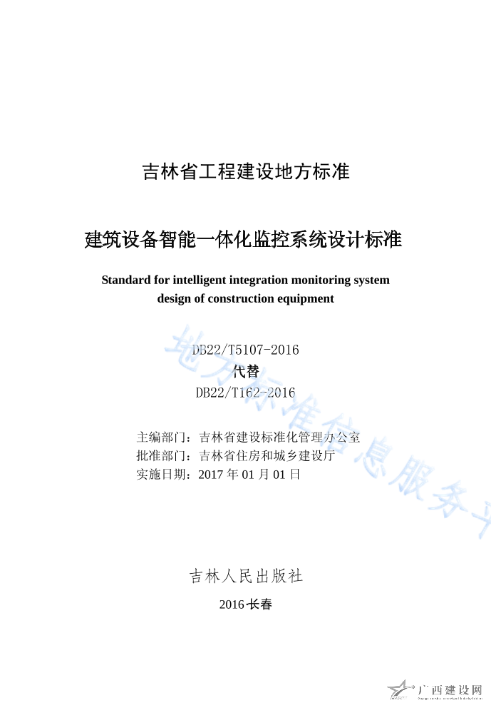 DB22T5107-2016建筑設(shè)備智能一體化監(jiān)控系統(tǒng)設(shè)計(jì)標(biāo)準(zhǔn)