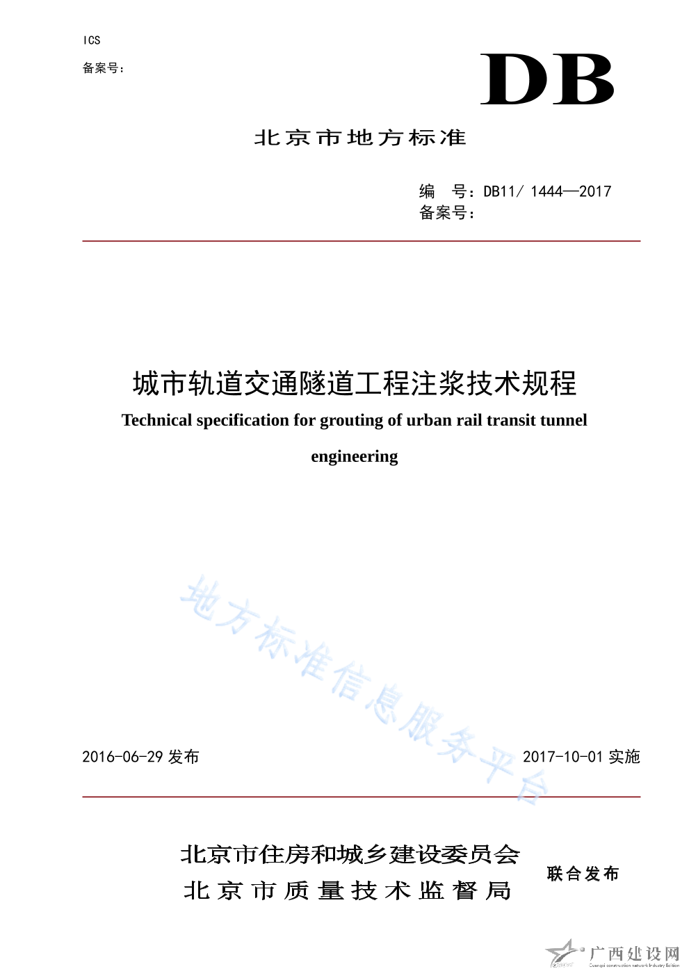 DB11 1316-2016城市軌道交通工程建設安全風險技術管理規范