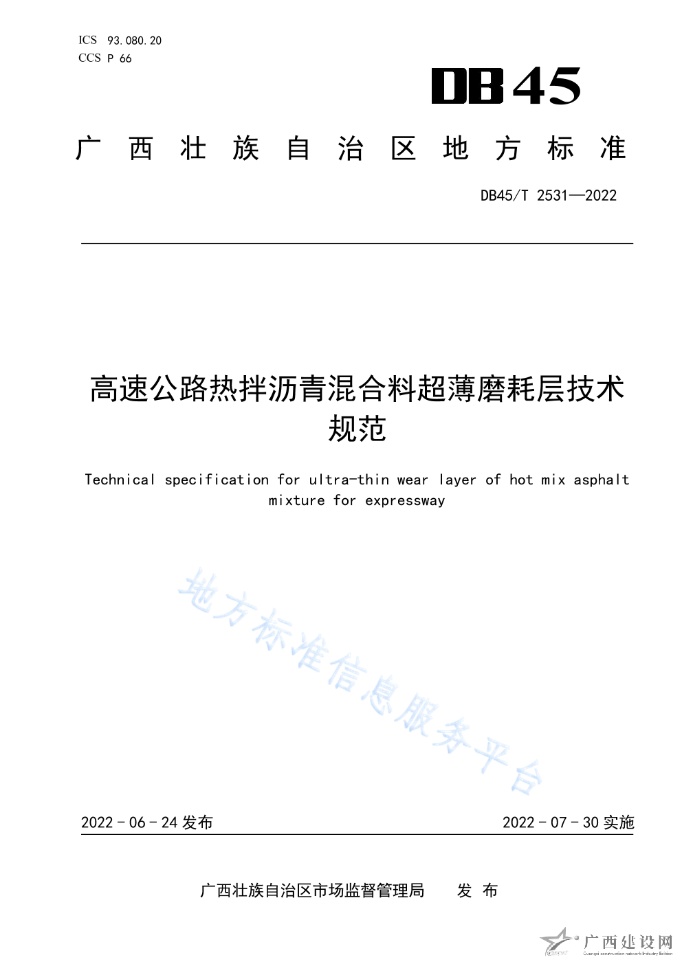DB45T+2531-2022+高速公路熱拌瀝青混合料超薄磨耗層技術(shù)規(guī)范