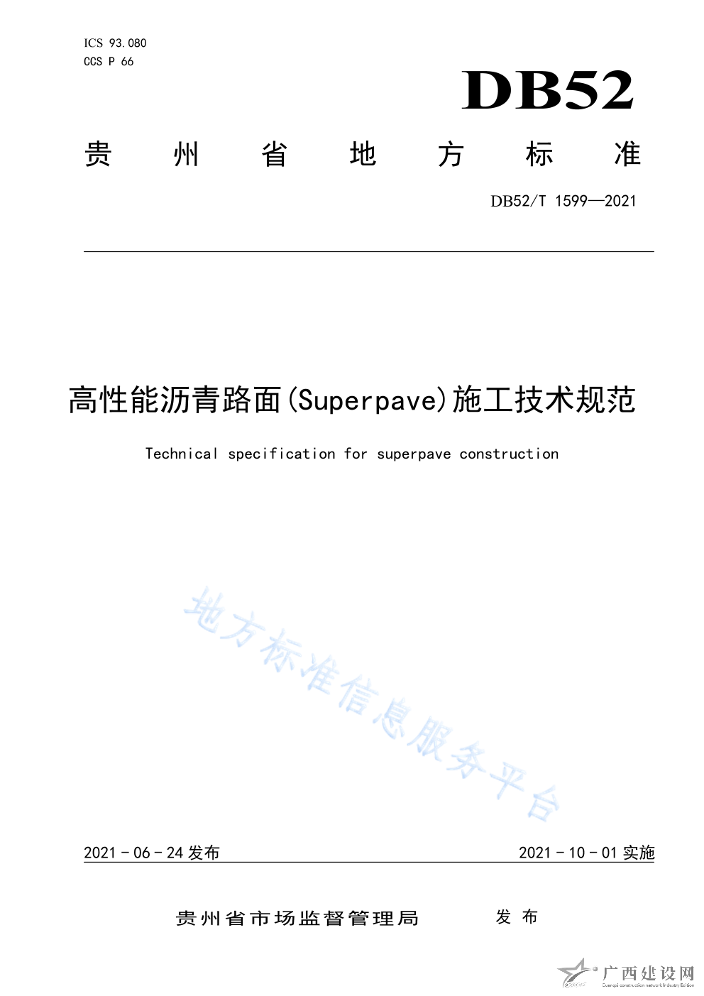 DB52 T1599-2021高性能瀝青路面(Superpave)施工技術(shù)規(guī)范