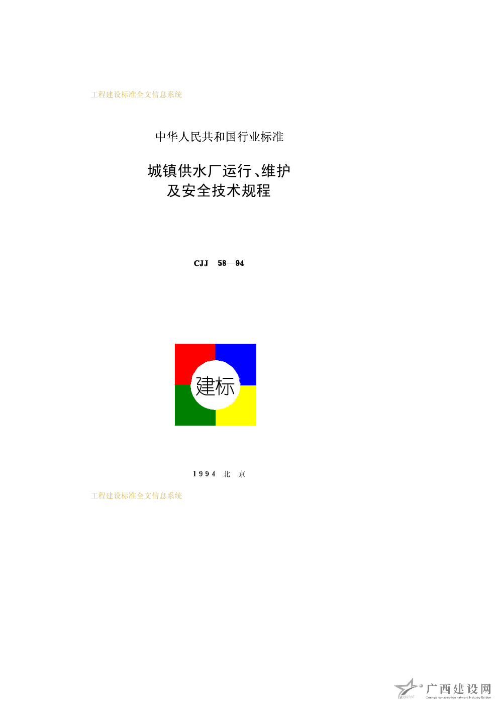 城鎮供水廠運行、維護及安全技術規程 CJJ58—94