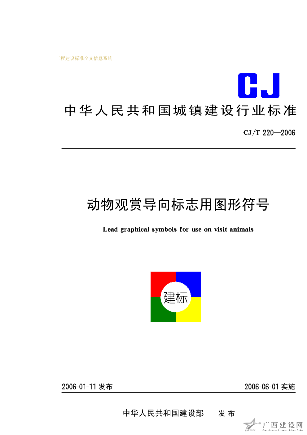動(dòng)物觀賞導(dǎo)向標(biāo)志用圖形符號(hào) CJ/T220-2006
