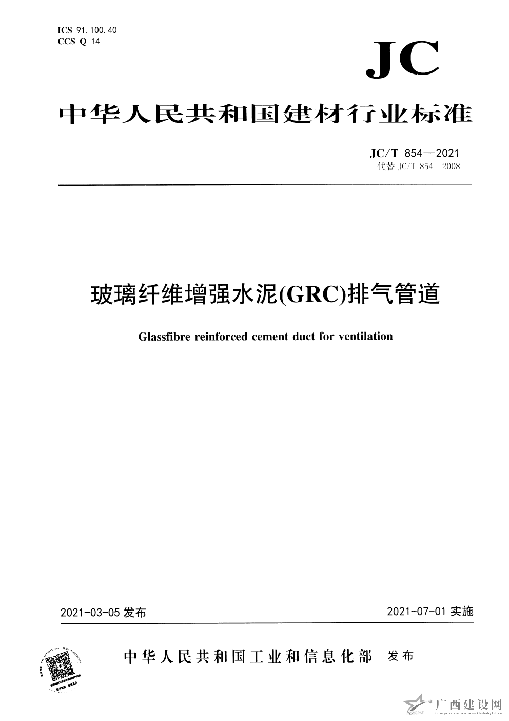 JC T 1057-2021 玻璃纖維增強水泥(GRC)外墻板