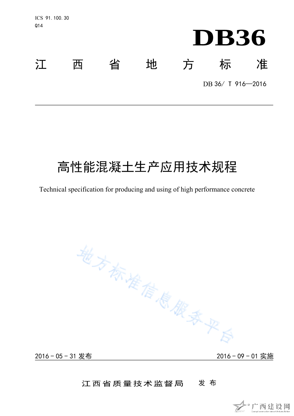 DB36 T916-2016高性能混凝土生產(chǎn)應(yīng)用技術(shù)規(guī)程