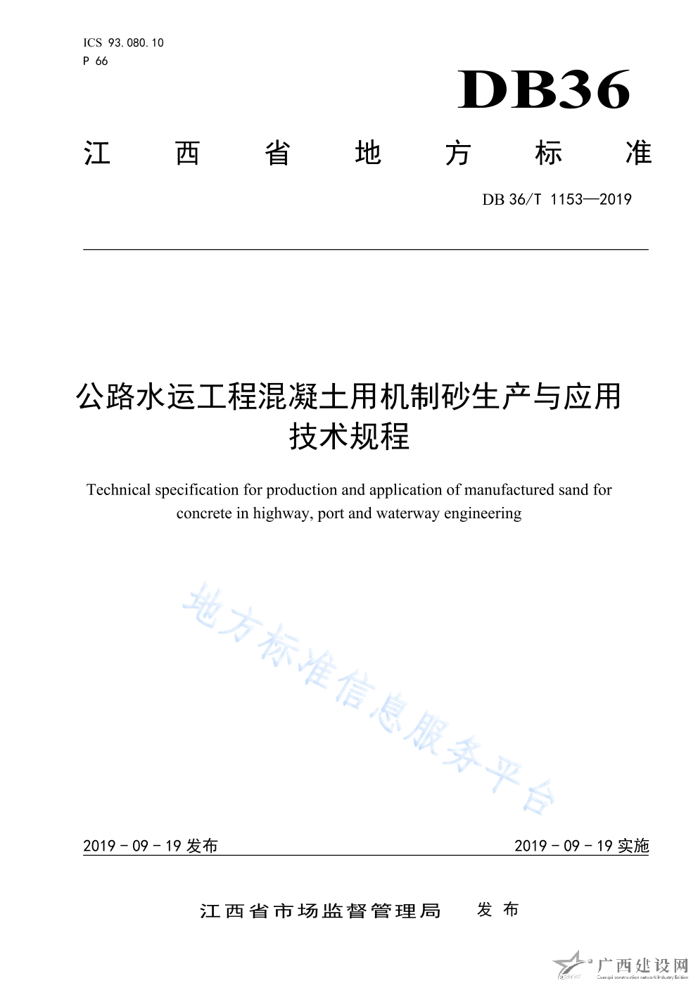 DB36 T1153-2019公路水運(yùn)工程混凝土用機(jī)制砂生產(chǎn)與應(yīng)用技術(shù)規(guī)程