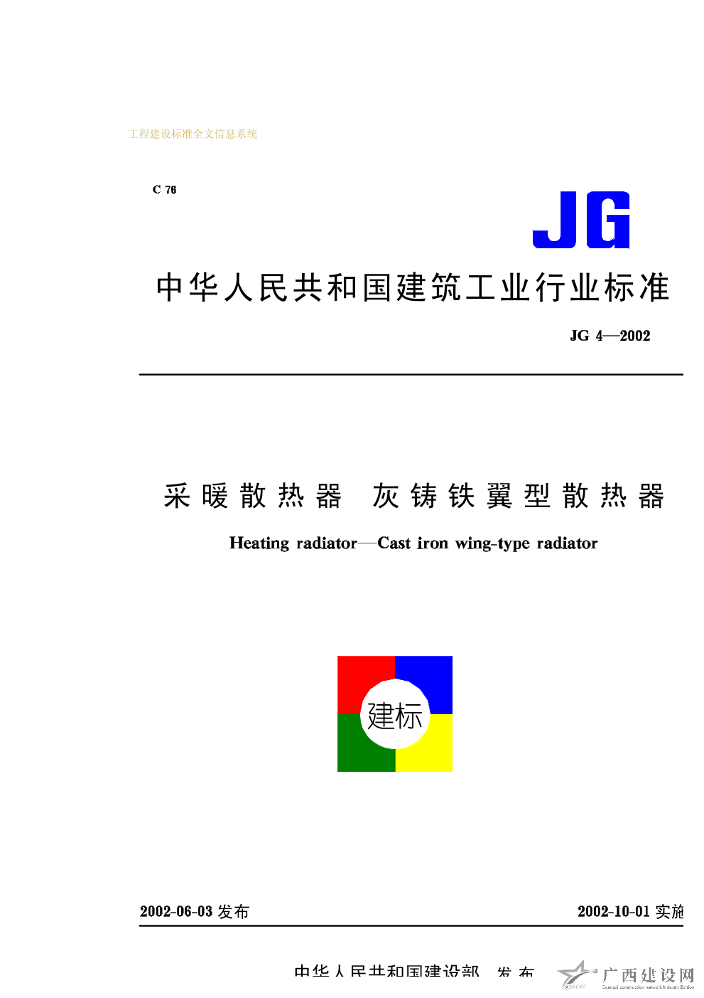 采暖散熱器灰鑄鐵柱型散熱器 JG3—2002