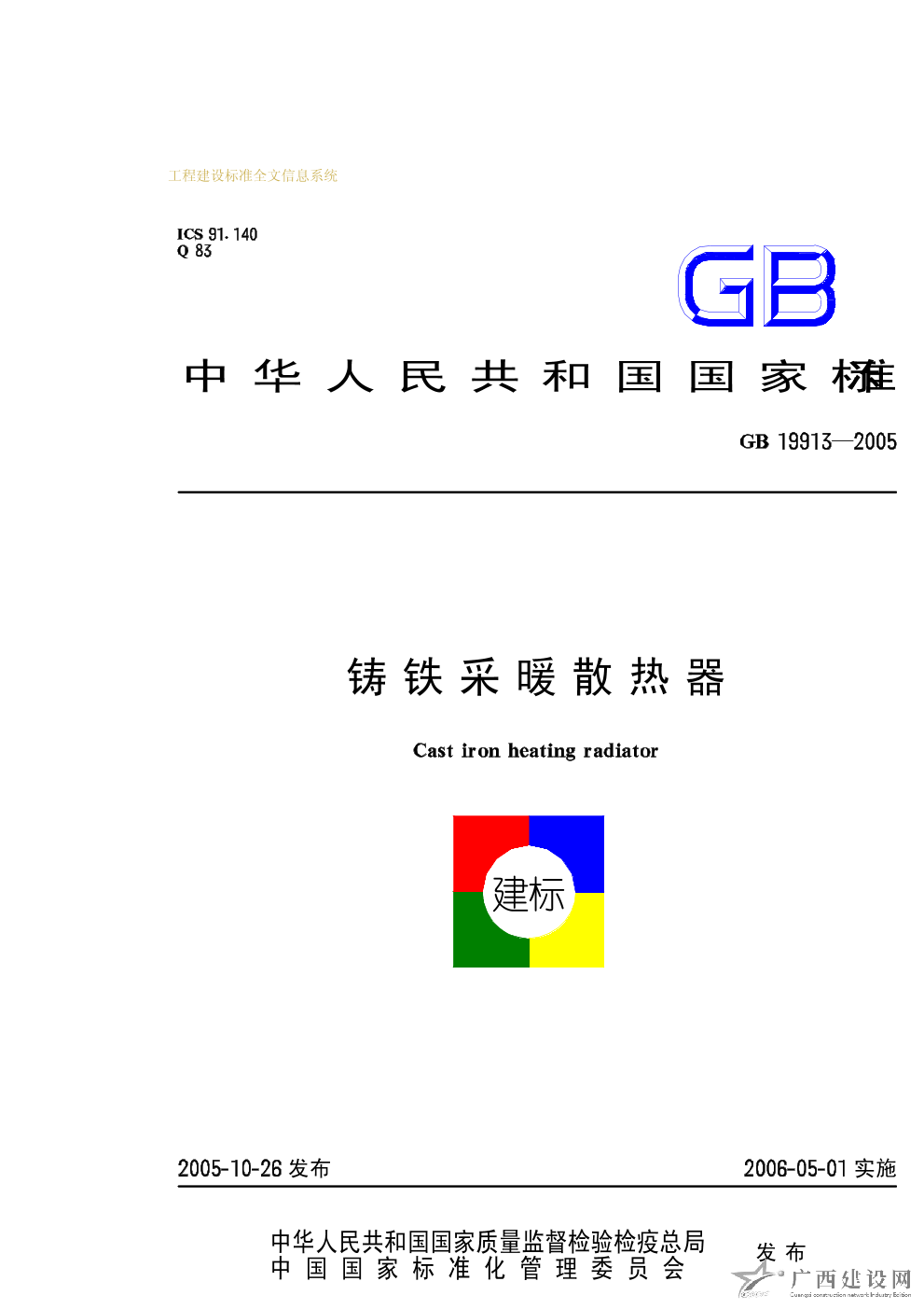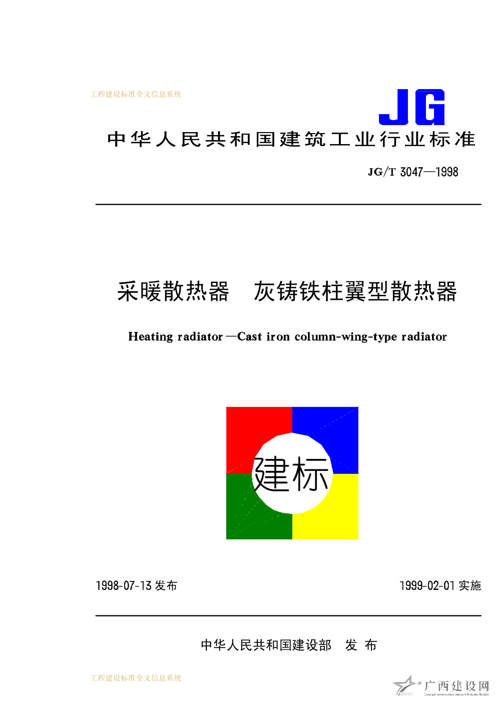 采暖散熱器灰鑄鐵柱翼型散熱器 JG/T3047—1998