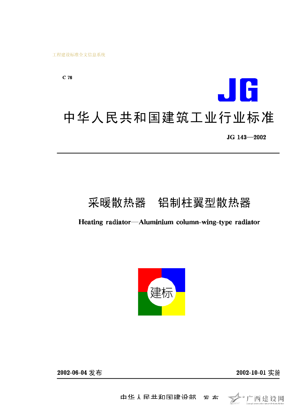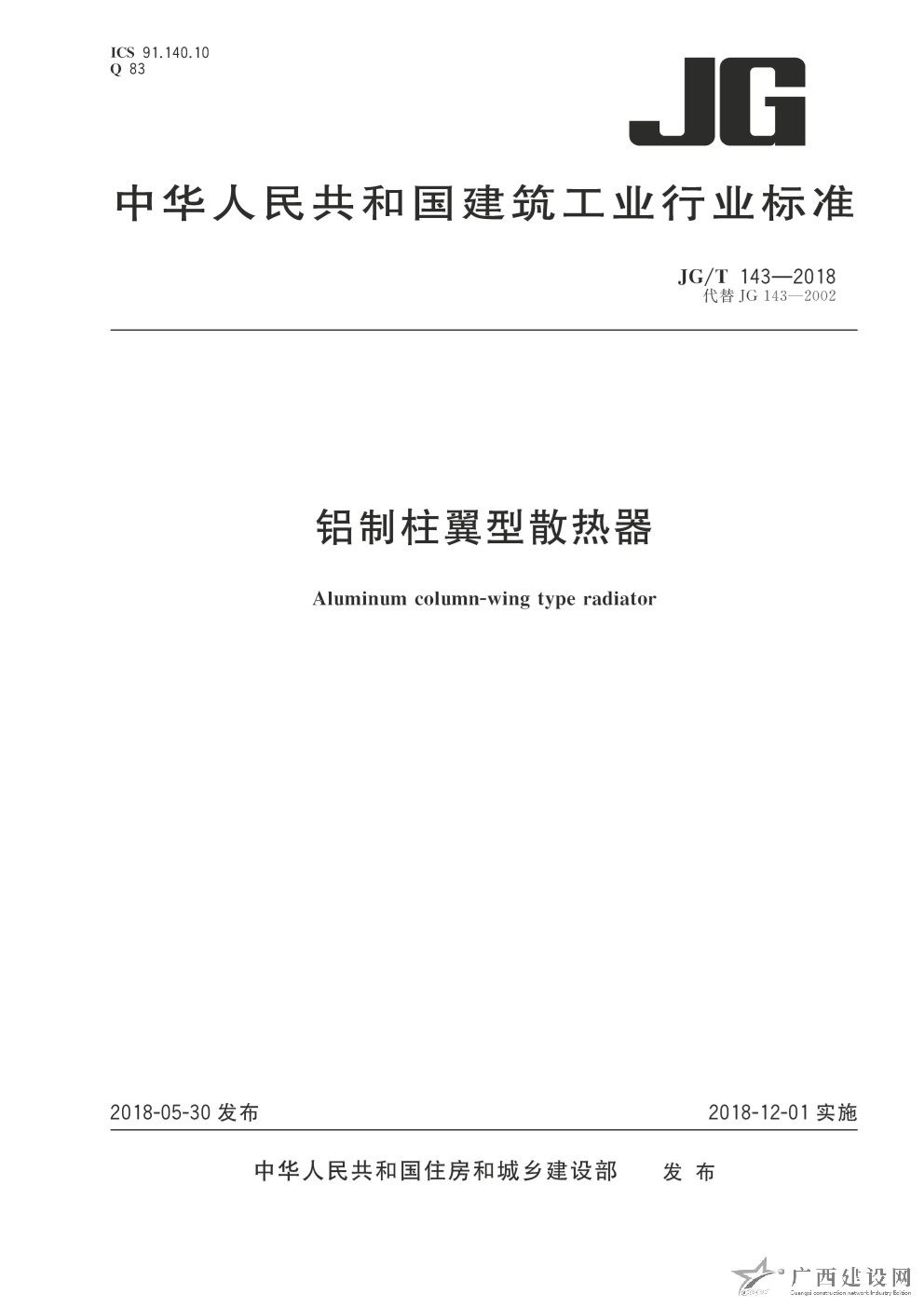 采暖散熱器鋁制柱翼型散熱器 JG143—2002