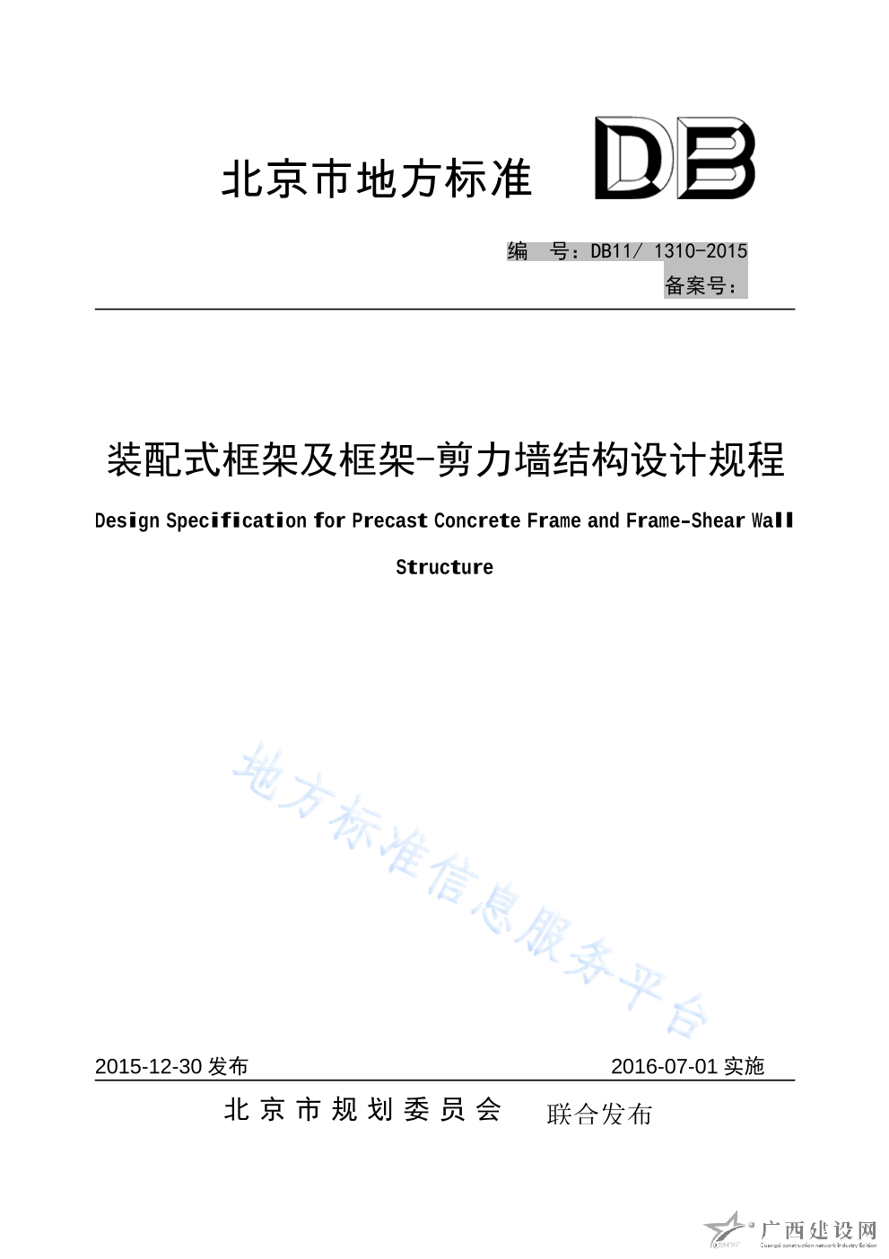 DB11 1310-2015裝配式框架及框架-剪力墻結(jié)構(gòu)設(shè)計(jì)規(guī)程