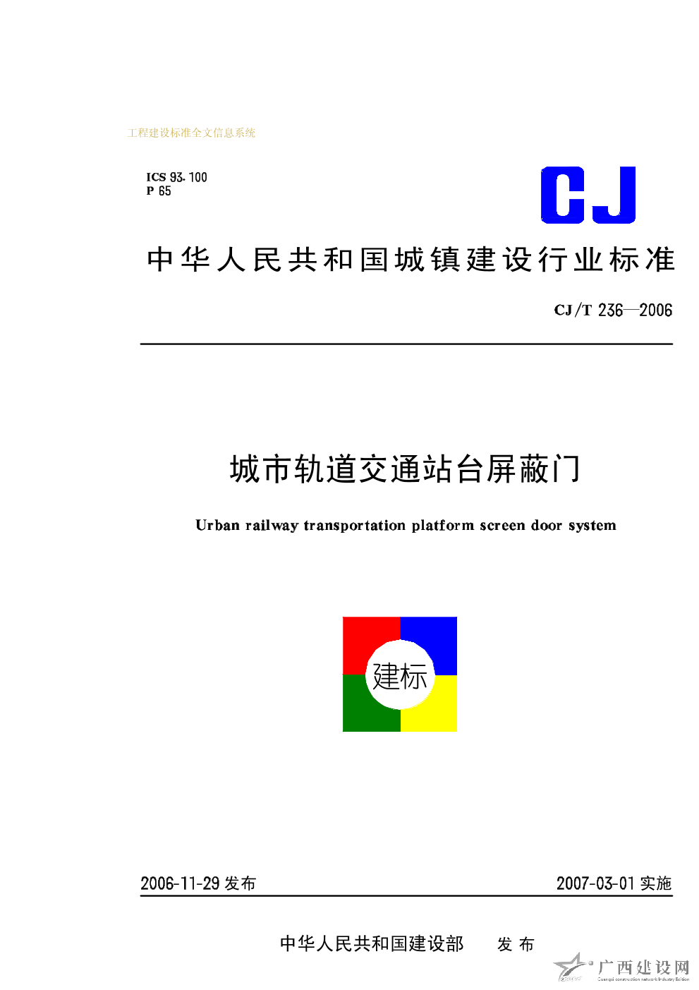 CJJ 183-2012 城市軌道交通站臺屏蔽門系統技術規范
