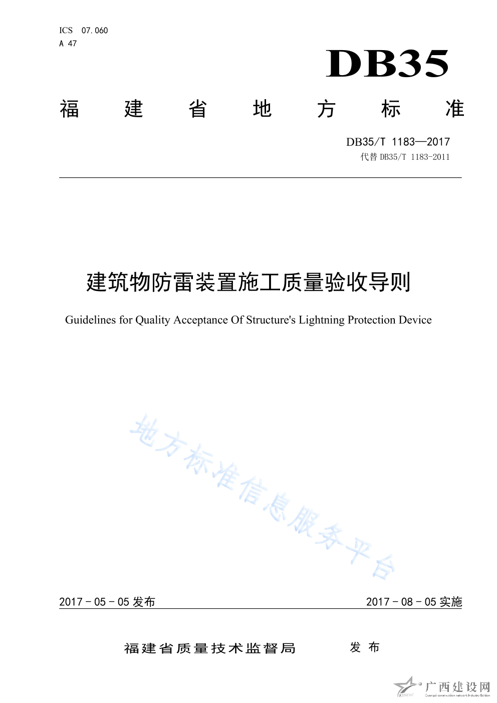 DB35 T1183-2017建筑物防雷裝置施工質量驗收導則