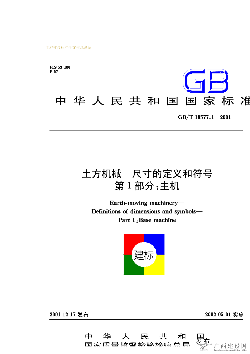 土方機(jī)械尺寸的定義和符號(hào)第1部分