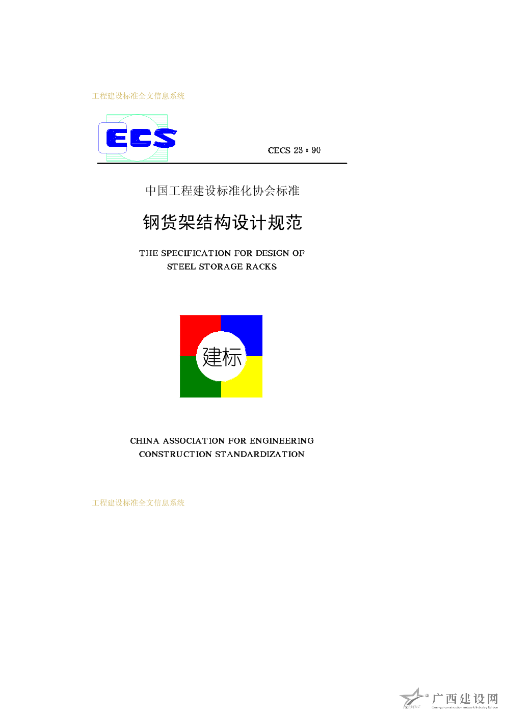 鋼貨架結(jié)構(gòu)設(shè)計(jì)規(guī)范 CECS23∶90