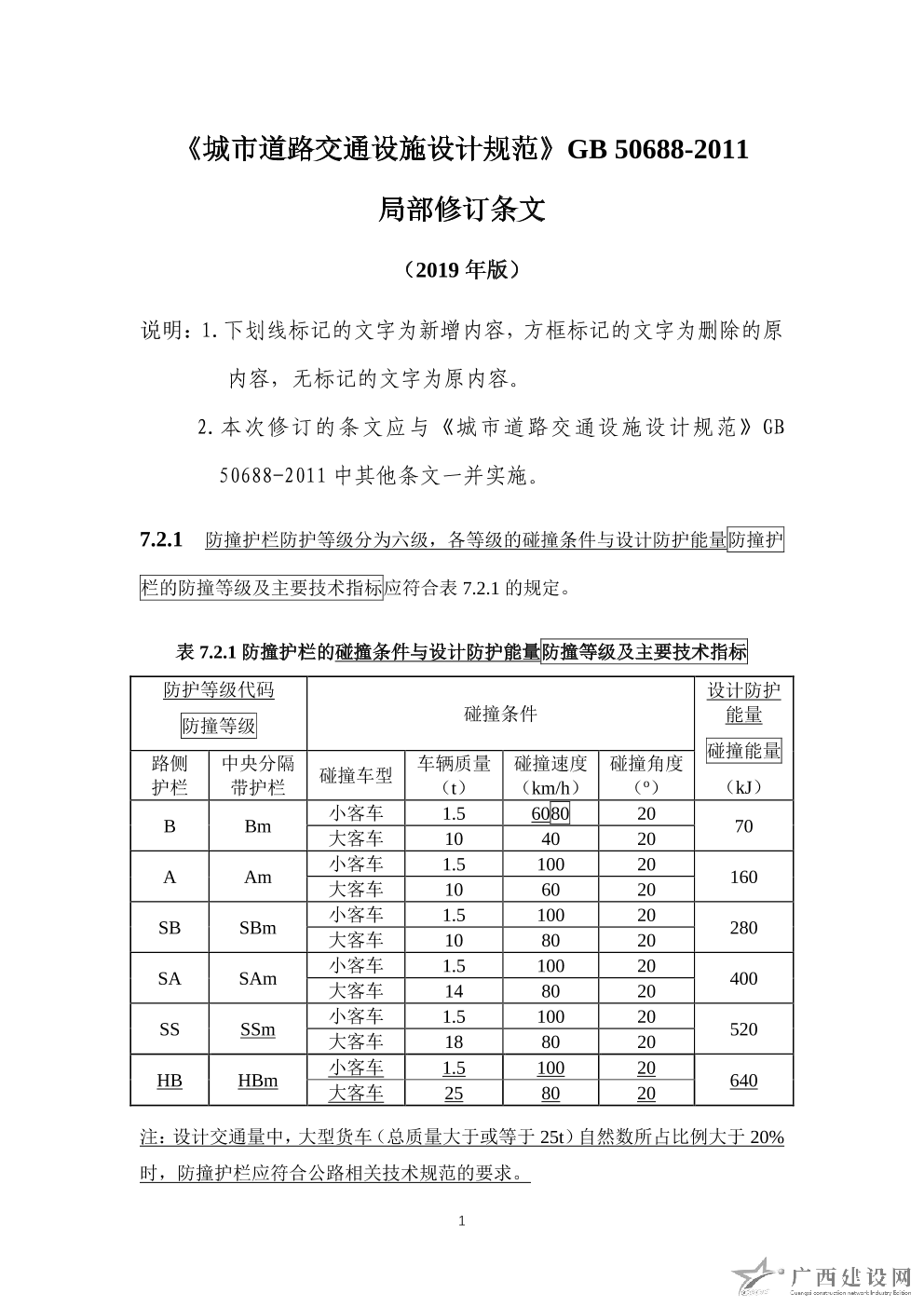 GB 50688-2011《城市道路交通設(shè)施設(shè)計規(guī)范》局部修訂條文及條文說明