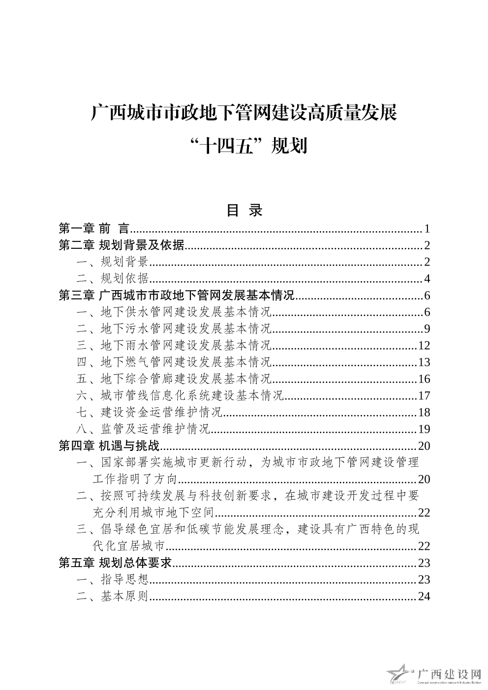 廣西城市市政地下管網建設高質量發展“十四五”規劃(廳網)