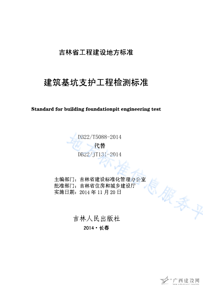 DB22T5088-2014建筑基坑支護工程檢測標準