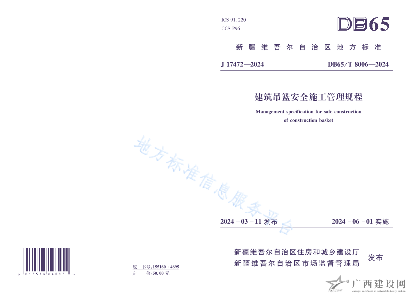 DB65T 8006-2024建筑吊籃安全施工管理規程