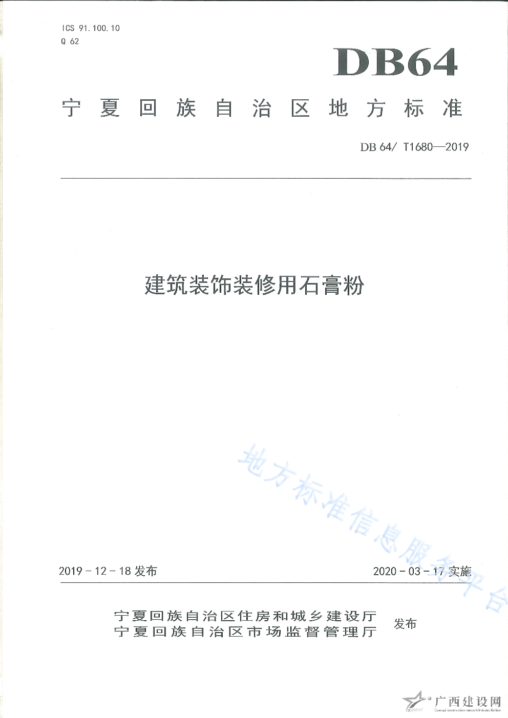 DB64 1680-2019建筑裝飾裝修用石膏粉