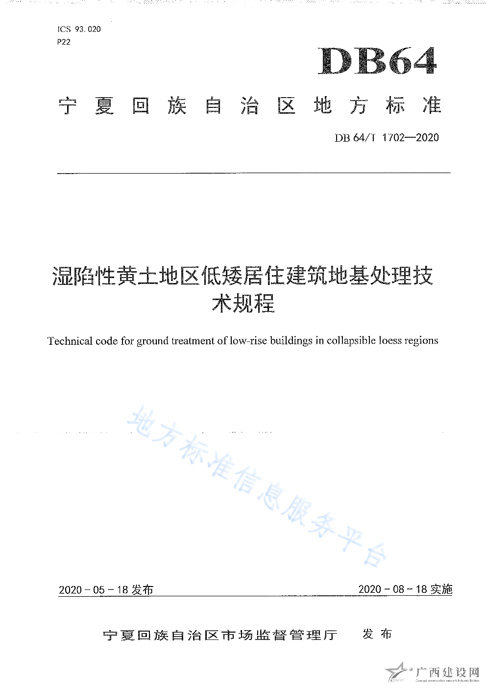 DB64 1702-2020濕陷性黃土地區(qū)低矮居住建筑地基處理技術(shù)規(guī)程