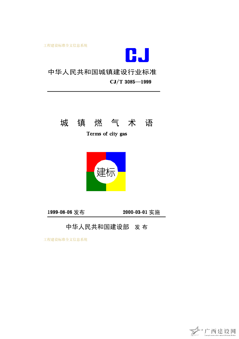 城鎮(zhèn)燃?xì)庑g(shù)語(yǔ) CJ/T3085—1999