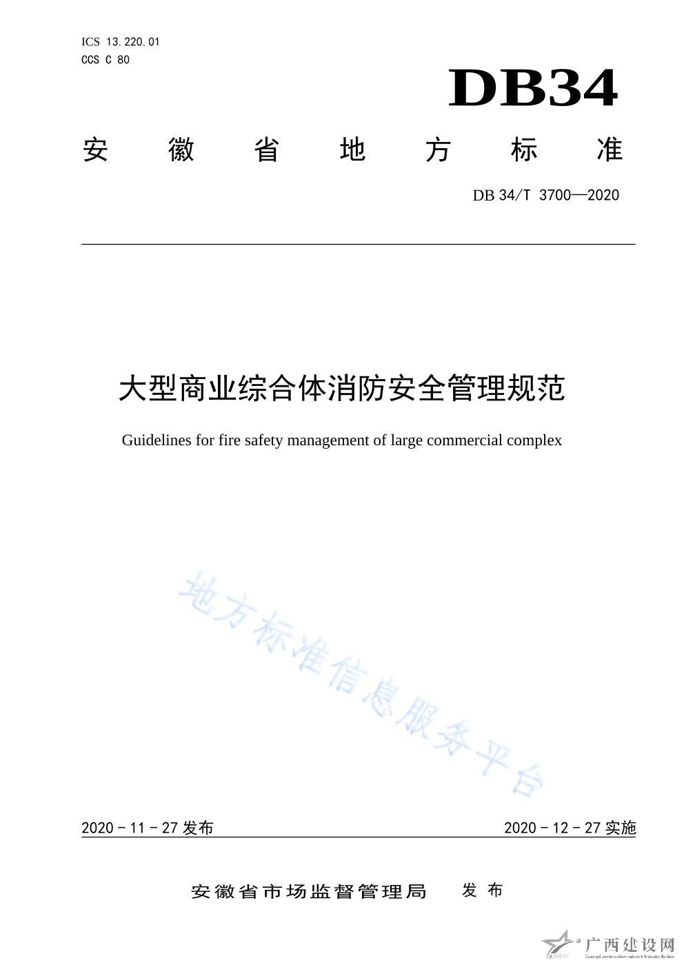 DB34 T3700-2020大型商業(yè)綜合體消防安全管理規(guī)范