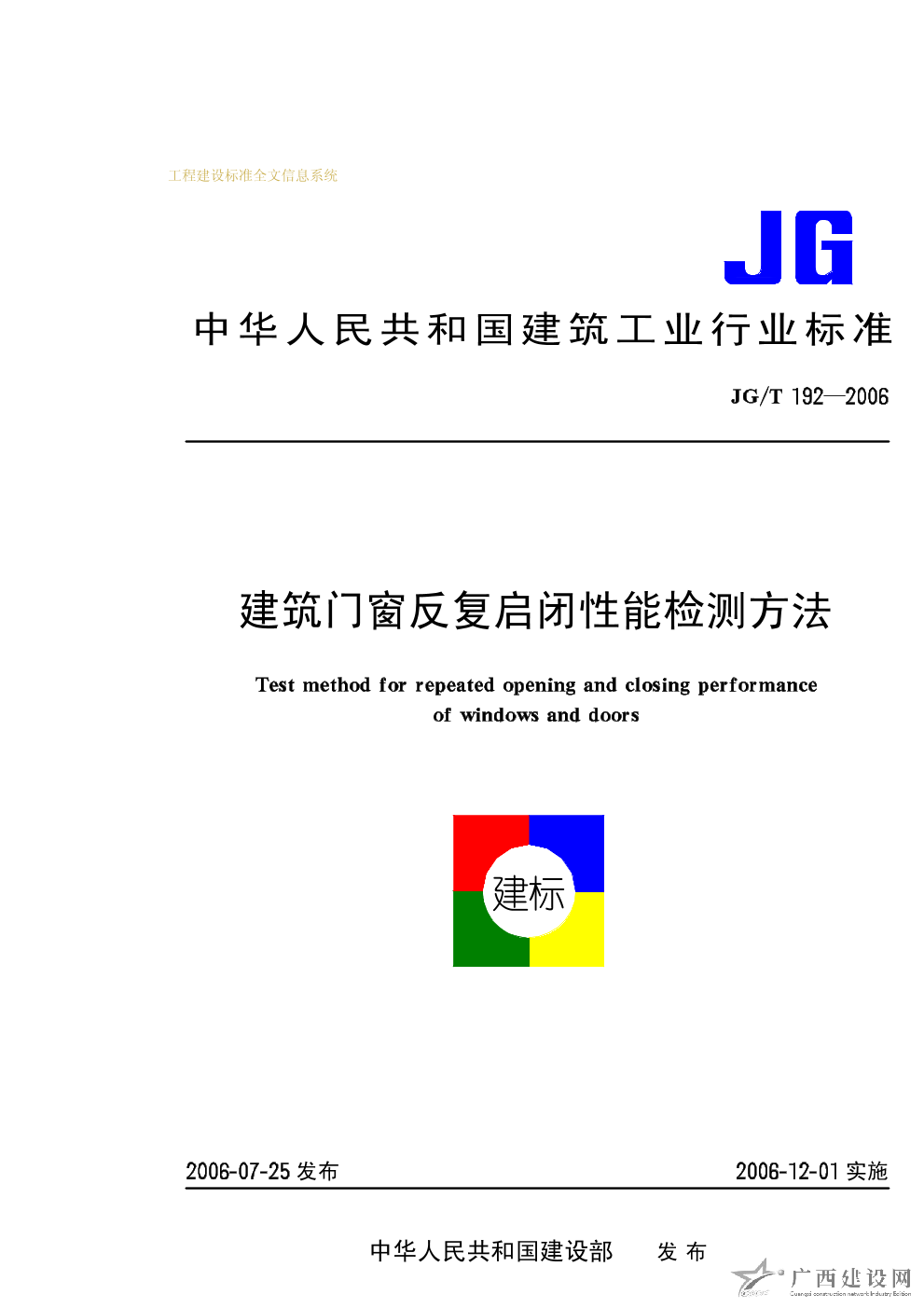建筑門窗反復(fù)啟閉性能檢測(cè)方法 JG/T192-2006