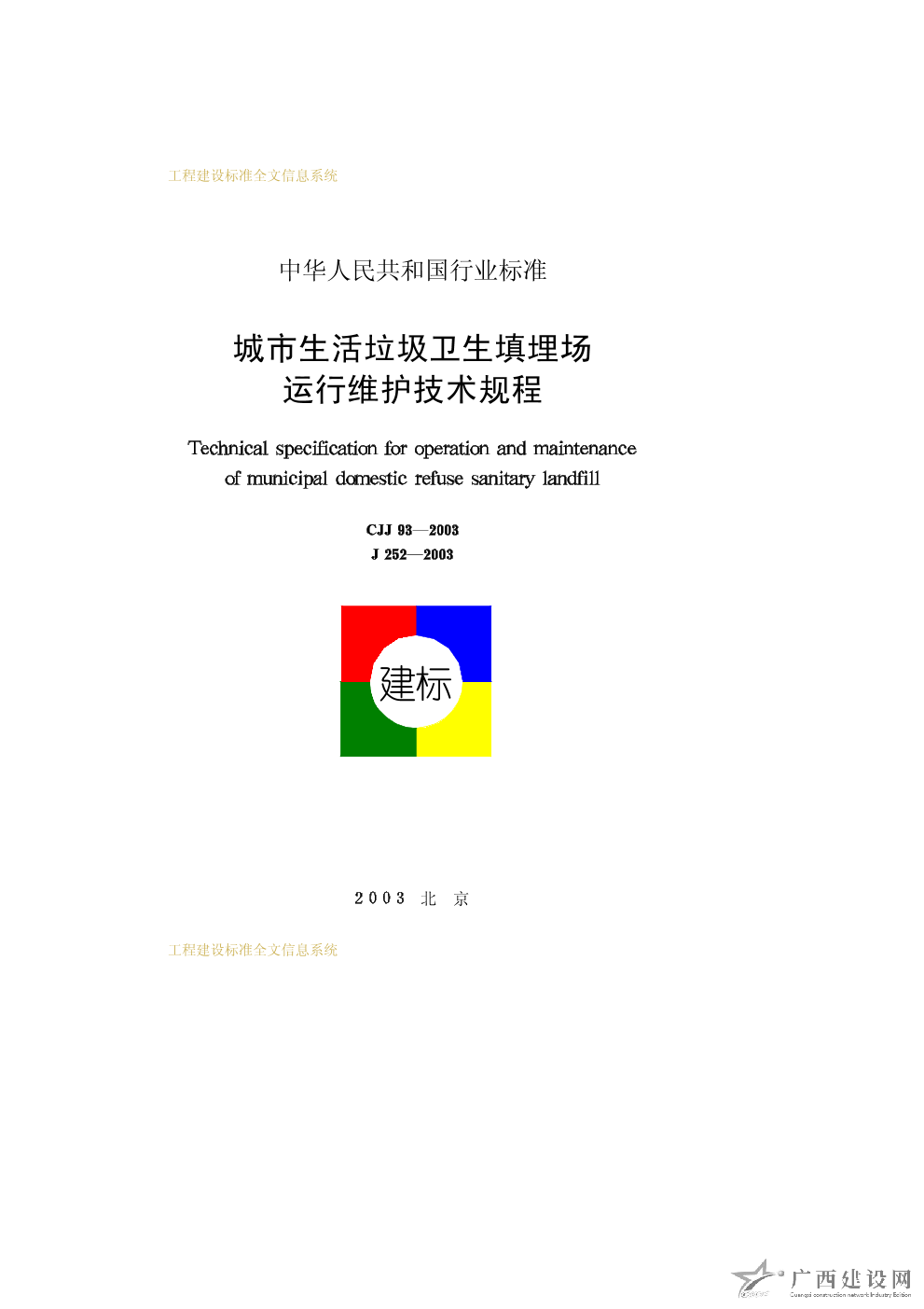 城市生活垃圾衛生填埋場運行維護技術規程 CJJ93-2003