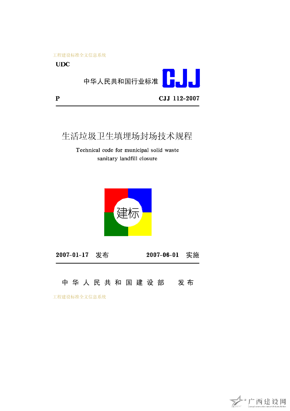 生活垃圾衛(wèi)生填埋場(chǎng)封場(chǎng)技術(shù)規(guī)程 CJJ112-2007